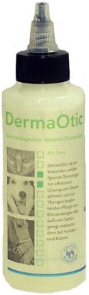 • DermaOtic renser øregangen uden at irritere huden. Løsner effektivt indtørret ørevoks mm.