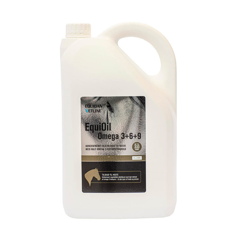 Der findes mange gode grunde til at tildele din hest olie, der indeholder Omega 3, 6 og 9 fedtsyrer og her er en høj Koncentreret 100 % vegetabilsk olietilskud til alle typer af heste. Lavdosis olie med et højt indhold af bl.a. hørfrøolie er med til at give EquiOil, dens unikke sammensætning, som gør den rig på alle de vigtige omegafedtsyrer – nemlig omega 3, 6 og 9. Sikrer korrekt forhold mellem de essentielle fedtsyrer i hestens foderplan. Omega 3 og 6 indgår i produktionen af kønshormoner, cellemembraner, hud, pels, hove og led. Derudover har omega 3 vist sig at have en gavnlig effekt for hestens generelle sundhed. Omega 9 er med til at opretholde blodårernes elasticitet. Optimal tildeling af omegafedtsyrer gør hudens modstandsdygtighed stærkere, og forårsager øget energiniveau, muskelarbejde og bedre restitutionsevne hos sportsheste.