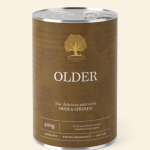 ESSENTIAL OLDER PÂTÉ er vores lækre paté med kødstykker af and og kylling skræddersyet til ældre hundes behov. Et fuldfoder måltid eller en velsmagende topping som støtter en mild fordøjelse - noget seniorer ofte sætter ekstra pris på.