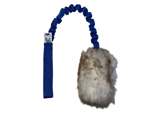 Fenriz Aktiv Bungee m. Fåreskind i str. S er velegnet til små og mellemstore hunde. Træningslegetøjet, som består af et solidt og kraftigt nylonbånd med et håndtag i den ene ende og fåreskind i den anden, er ideelt at bruge som belønningslegetøj. Den kraftige elastik sikrer, at både hund og fører skånes for de stød som kan opstå, når der trækkes i fåreskindet – bl.a. skånes nakke og skulderpartiet. Udover trække lege lægger Fenriz Aktiv Bungee m. Fåreskind også op til diverse hente/kaste lege.