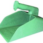 - Helstøbt plast med håndtag ovenpå skovlen.