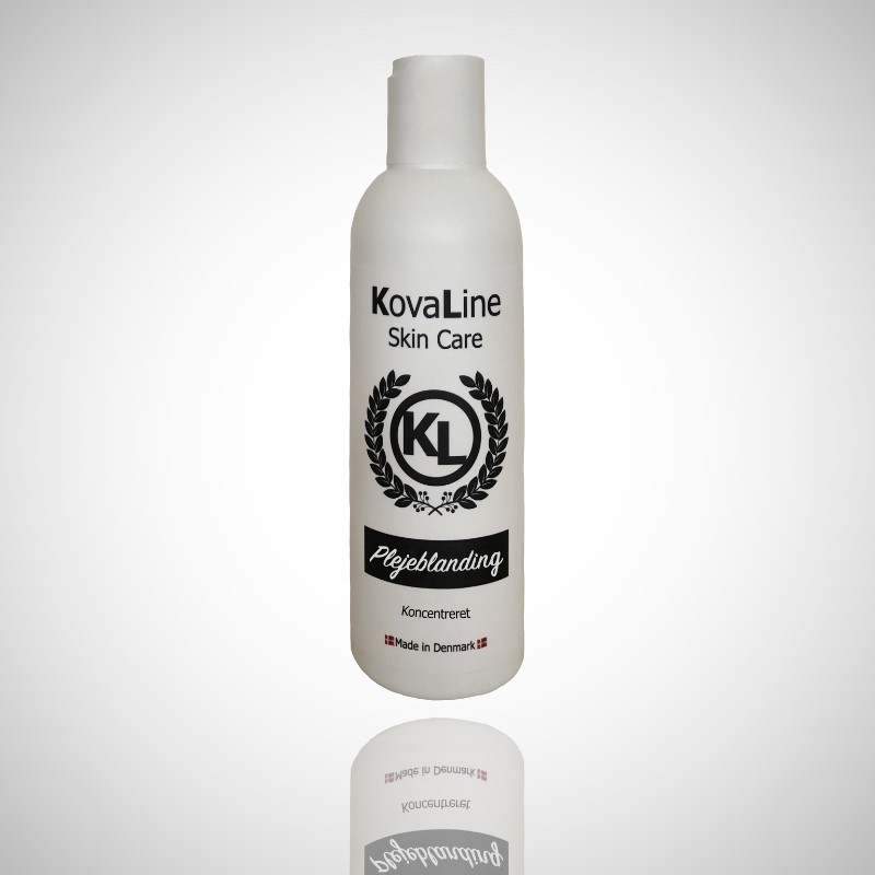 KovaLine Plejeblanding 200 ml. skal blandes i forholdet 1:10 med vand og giver ialt 2 l færdig plejeblanding. Velegnet til behandlinger over længere tid. KovaLine Plejeblanding renser, peeler og plejer i én og samme proces.