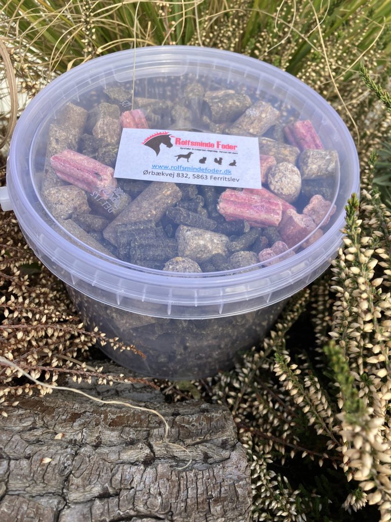 Blandingen er naturlig, velsmagende og fri for unødvendige tilsætningsstoffer, og velegnet som både belønning, træningsgodbidder eller hyggesnack i stalden.