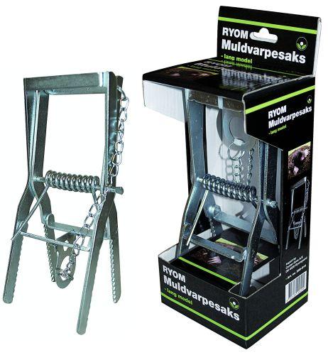 Muldvarpefælde til nedsætning i muldvarpeskud.