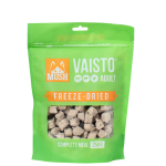 MUSH Vaisto Grøn Frysetørret (okse, gris, kylling) er et skånsomt og fuldfoder til voksne hunde. Denne variant indeholder den laveste benandel i hele Vaisto-serien samt lidt ekstra oksemave, hvilket gør foderet særligt velegnet til hunde med sart mave eller en langsommere fordøjelse.