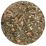 Æblekvas formalet, Roefibre, Græsmel, Solsikke formalet, Fint snittet hø, Hørfrø, Mynte, Honning, Kanel, Rapsolie, Hybenskaller, Kamilleblomst, Gulerodsflager, Morgenfrueblomst