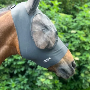 WeatherBeeta Stretch Fluemaske/Insektmaske med Nordic Horse logo. Fluemasken er super komfortabel for hesten, og holder insekter væk fra både ører og øjne. Produceret i en let, blød og fleksibel stretch, som former sig efter hestens hoved. Nem at tage af og på – lukkes med lynlås og velcro under kæben. Insektmasken er med mesh over ørerne, har et hævet mesh-indlæg med god plads over øjnene og hul til pandelokken. Blokerer 98% UV-stråler. Findes i 6 størrelser: Mini, Small Pony, Pony, Cob, Full og X-Full (normal i størrelsen)