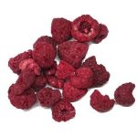 Frysetørret hindbær. Ingen sukker, ingen konserveringsmidler, ingen kunstige farver. Naturlig smag, aroma og farve.