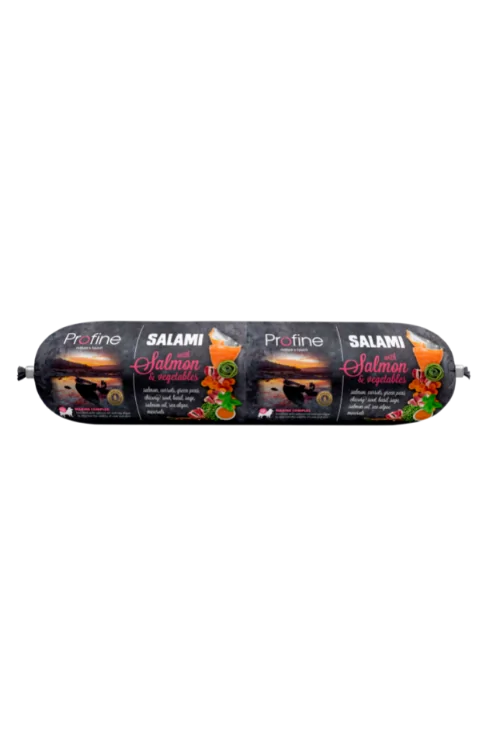 - Profine Salami Salmon & Vegetables er fyldt med smagfuld kød, som helt naturligt indeholder et højt indhold af omega 3 og 6.