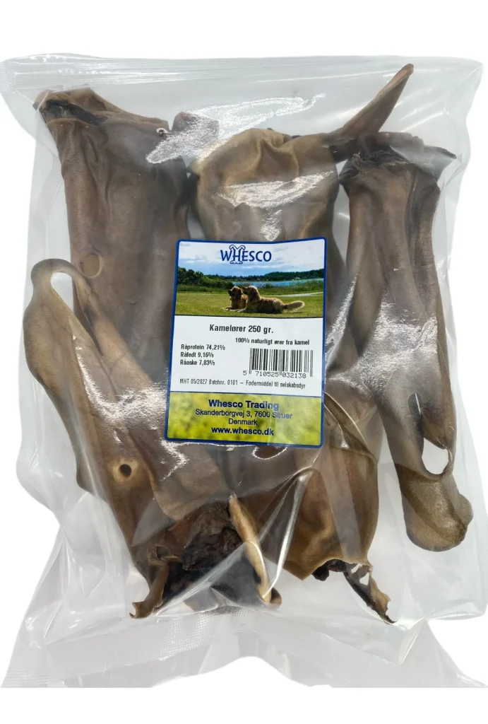 100% naturlige kamelører fra Whesco Nature – en allergivenlig snack uden tilsætningsstoffer. Perfekt til hunde som ikke tåler fx. kylling.